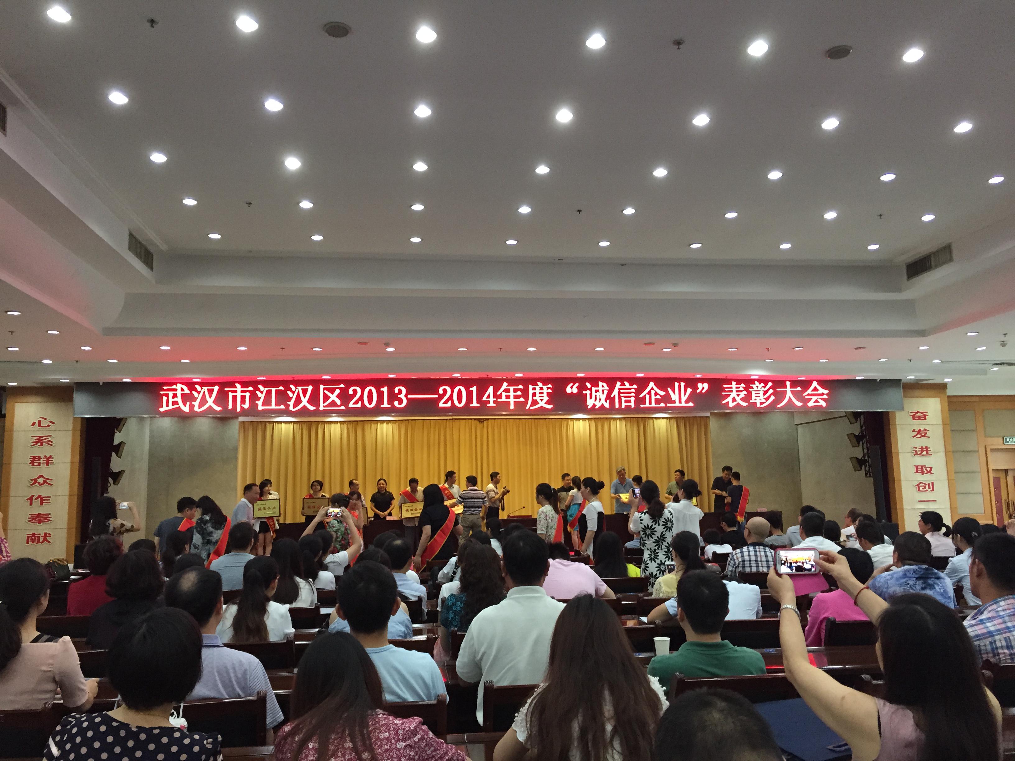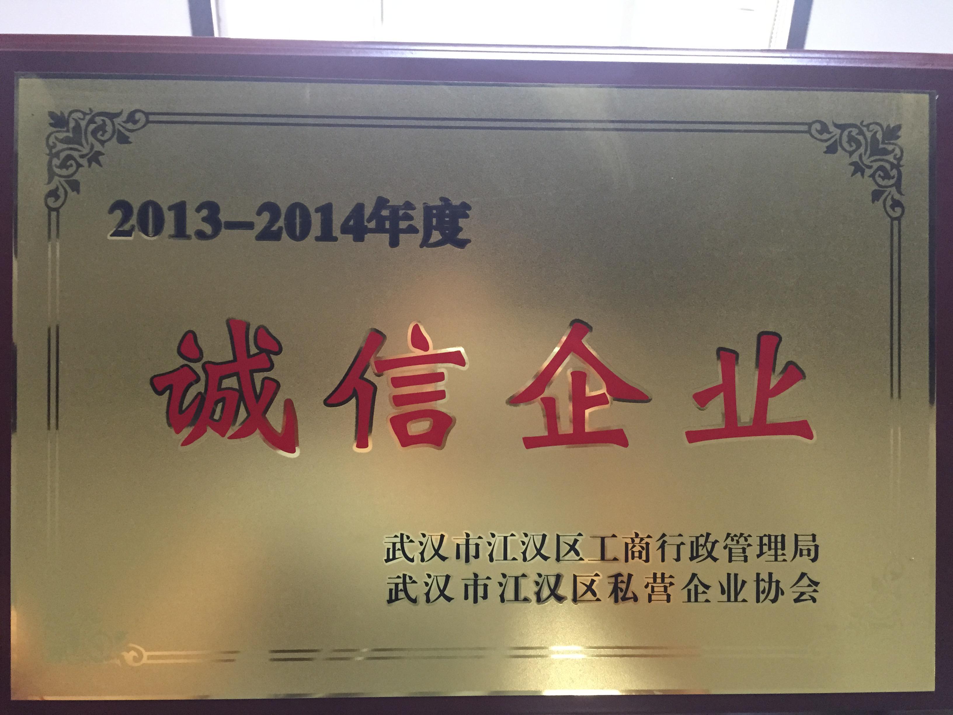 祝賀我公司榮獲2013-2014年度江漢區(qū)“誠信企業(yè)”榮譽(yù)稱號(hào)